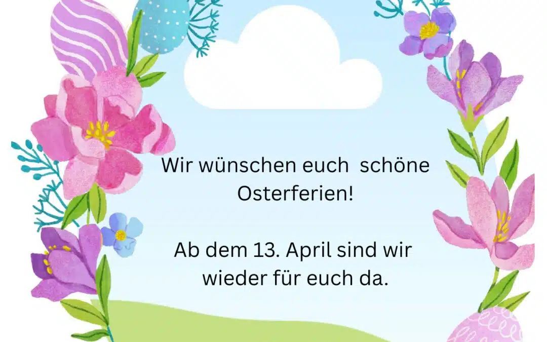 Osterferien März 30, 2026 Kommentar absenden Antwort abbrechenDeine E-Mail-Adresse wird nicht veröffentlicht. Erforderliche Felder sind mit * markiertKommentar * Name * E-Mail-Adresse * Website Meinen Namen, meine E-Mail-Adresse und meine Website in diesem Browser für die nächste Kommentierung speichern.
